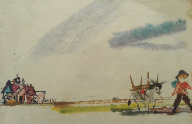 A la mañana siguiente, el tornerito salió de la posada: llevaba la mesita mágica de su hermano mayor, y el burro de oro de su segundo hermano.